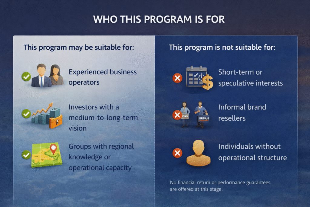Participation in the program is subject to internal evaluation, territorial availability, and strategic alignment.